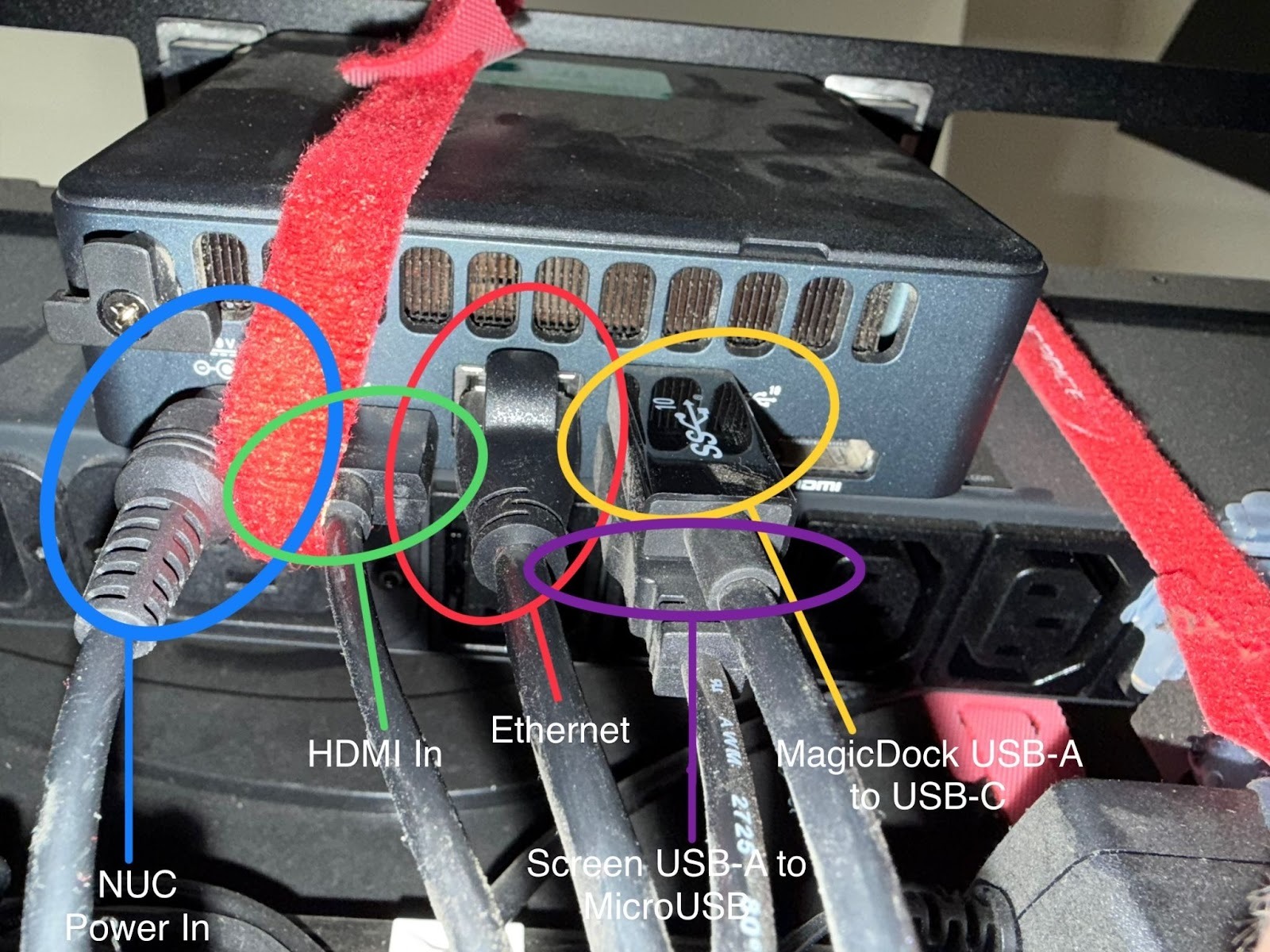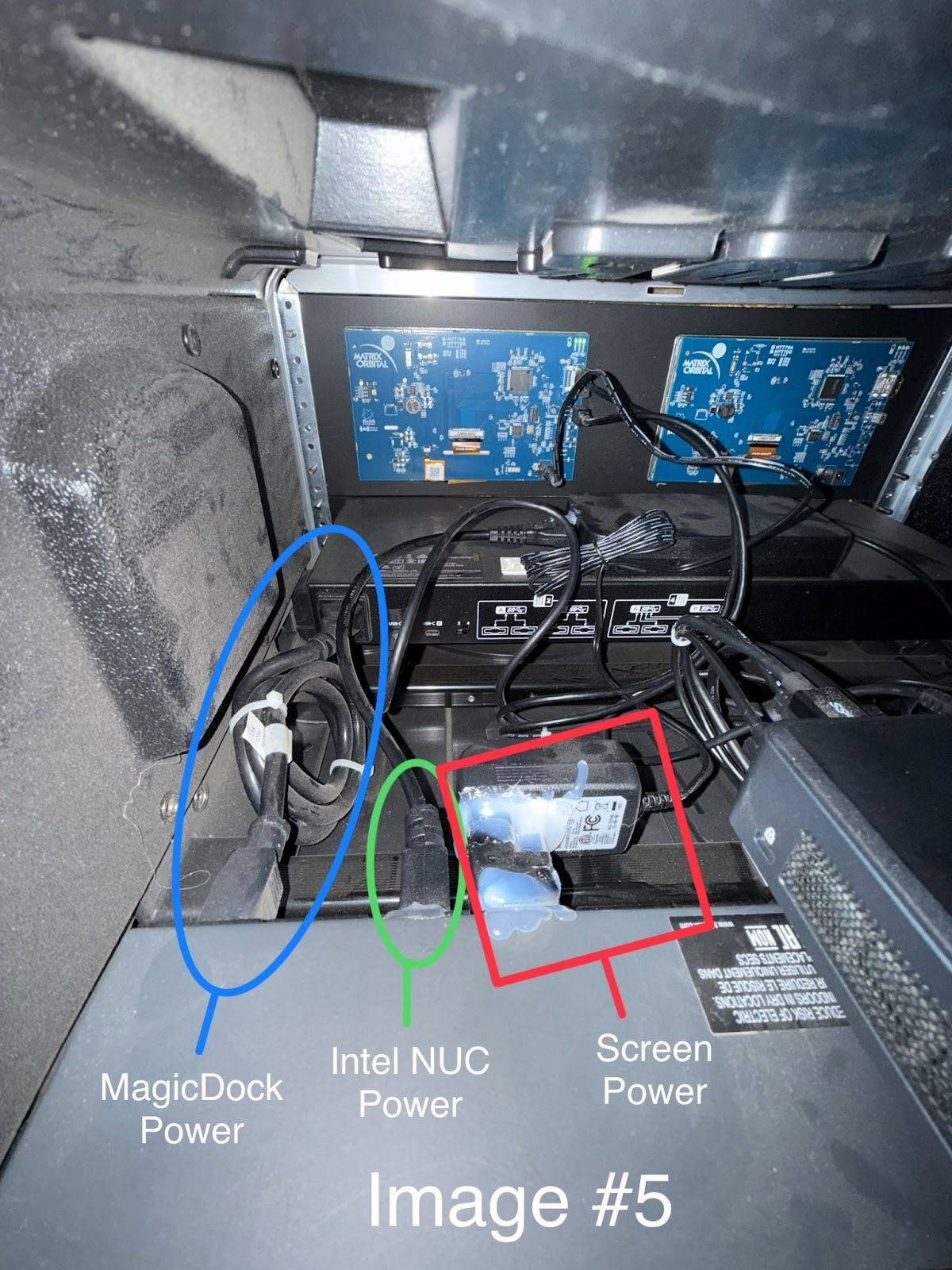 Follow the NUC's power cable from the PDU [Refer to Image #5] to the power brick (mounted on the MagicDock).