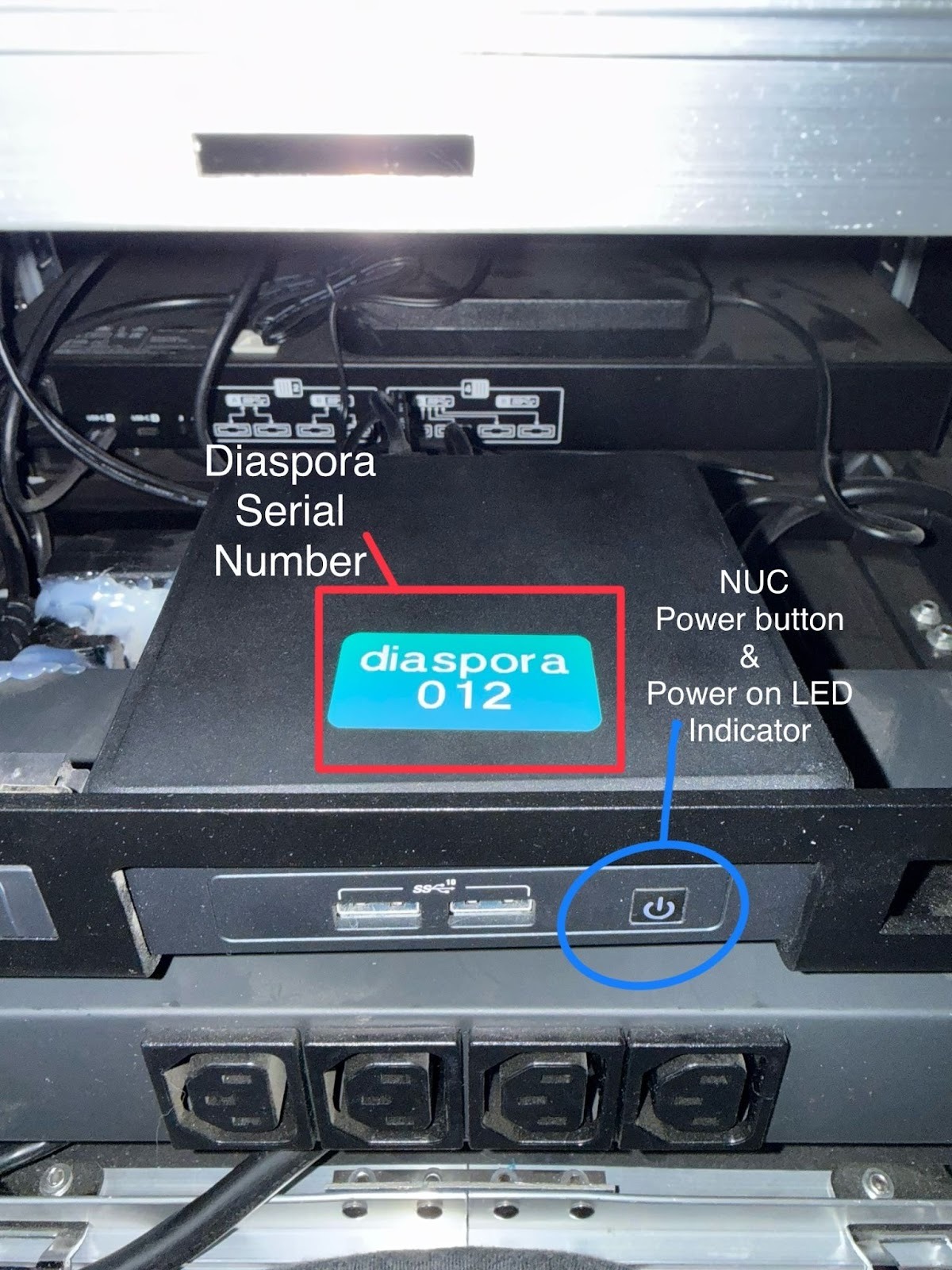 Check the NUC's LED power light indicator. If it is off, press the power button on the NUC to turn it on. [Refer to Image #6]