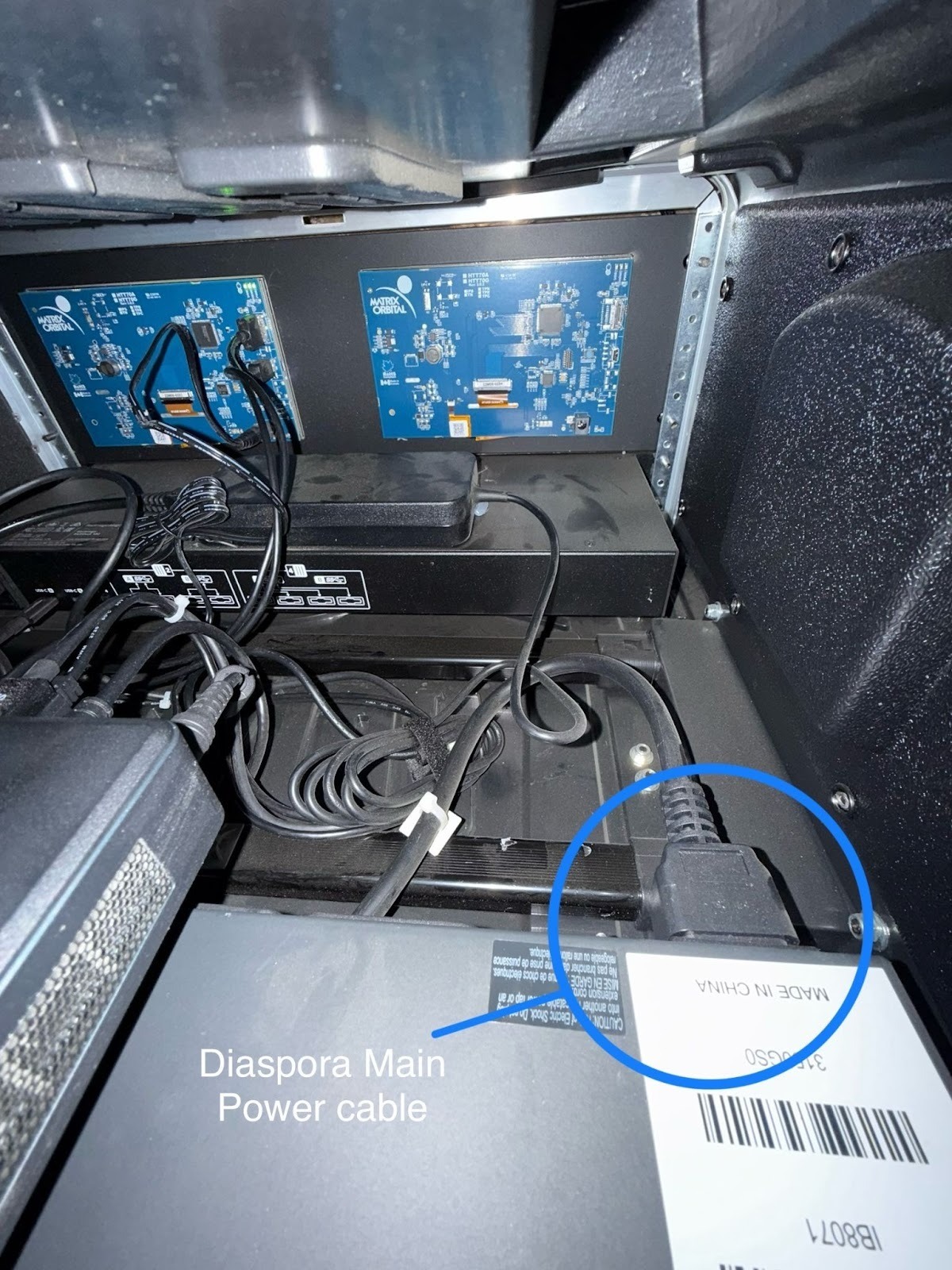 Verify the main power cord is securely plugged into the equipment and the Tripp-Lite PDU. [Refer to Image #4]